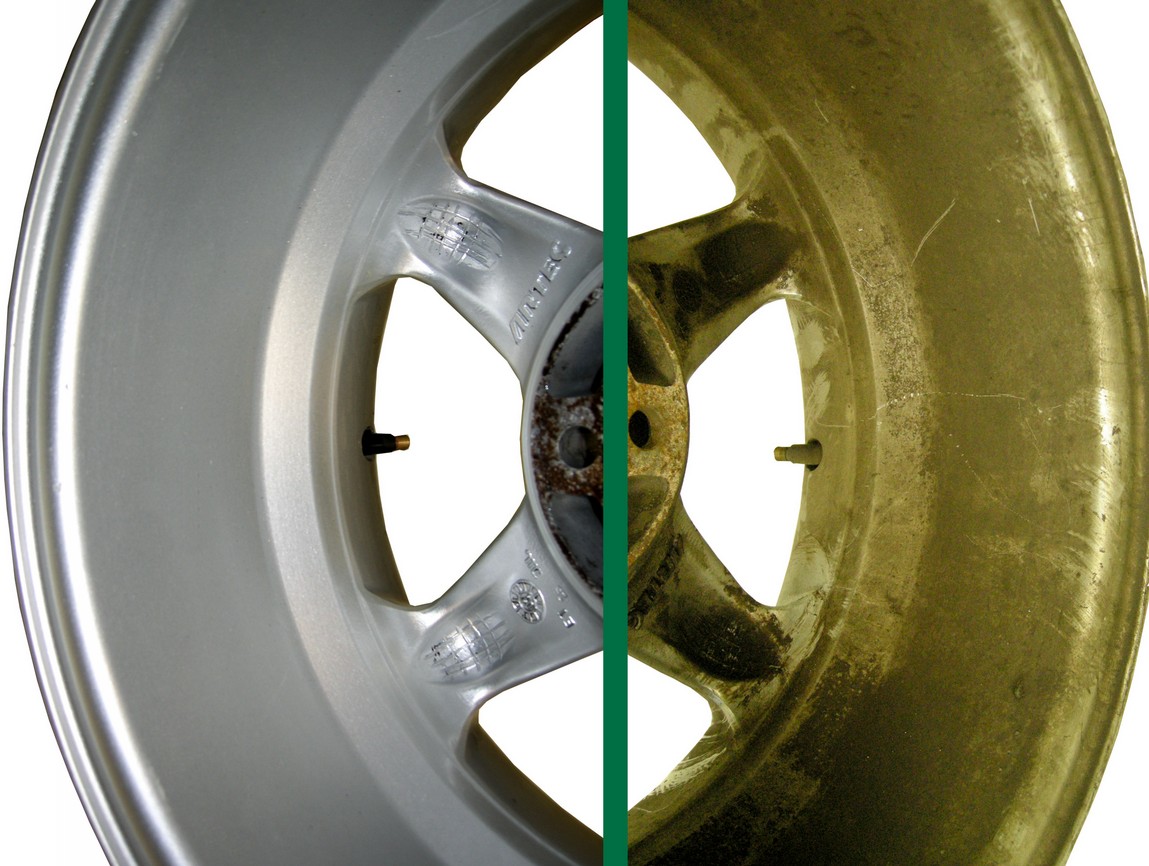 Stark saurer Reiniger für hartnäckige Verschmutzungen auf Felgen,